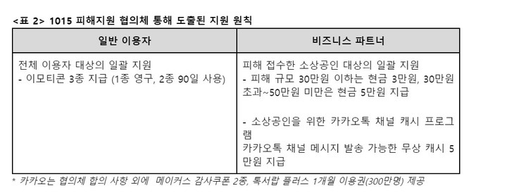 송지혜 카카오 카카오톡 부문장 김기홍 소상공인연합회 감사 차남수 정책홍보. 지난해 10월 발생한 카카오 먹통 사태로 불편을 겪은 이용자를 위한 피해 보상.